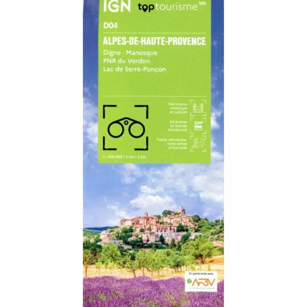 La nouvelle TOP 100 grâce à son échelle au 1:100.000ème (1 cm = 1 km) est la carte idéale pour découvrir une région et faire du tourisme à pied (GR), à vélo ou en voiture, les parcours VELO sont réalisés en partenariat avec l’association AF3V – VéloRoutes et Voies Vertes.