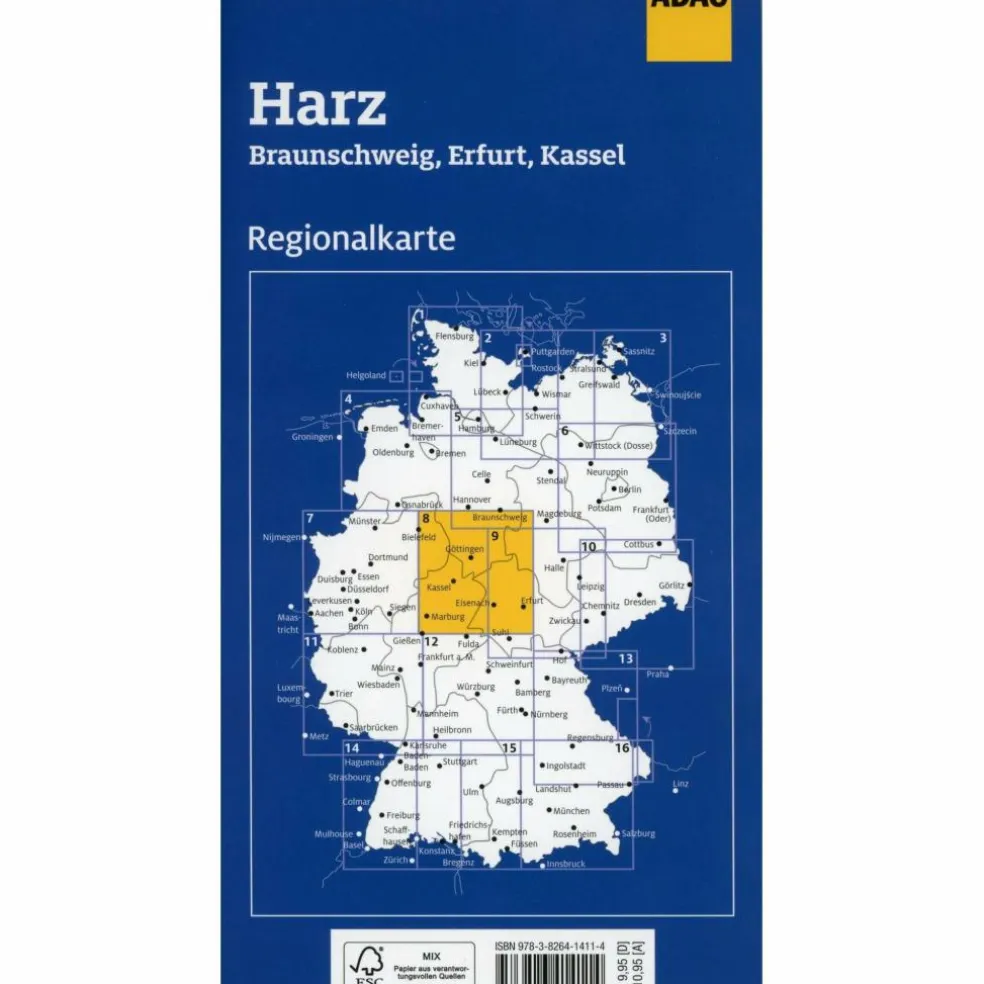 ADAC REGIONALKARTE BLATT 8 HARZ, BRAUNSCHWEIG, ERFURT, KASS – Straßenkarte