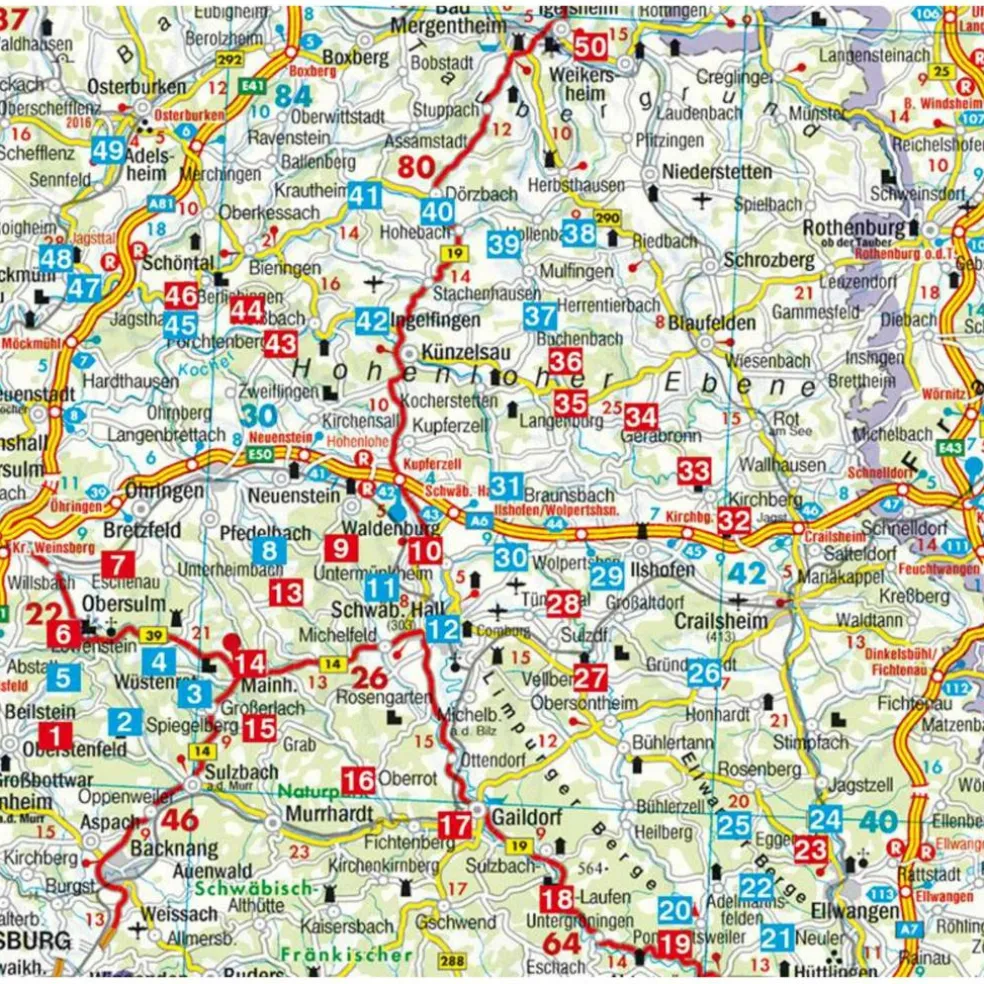 Grüne Weiden und bunte Wiesen, malerische Fachwerkdörfer und mittelalterliche Burgen und dazu viel naturbelassene Landschaft – in Hohenlohe ist Natur und Kultur aufs vortrefflichste miteinander verbunden. Kaum zu glauben, dass einer der bekanntesten Bewohner Hohenlohes, Götz von Berlichingen, in einer so schönen Gegend seinen berühmten »Kraftausdruck« sprach! Ob auf den Spuren des bekannten Ritters oder durch herrlich wilde Wälder – mit dem Rother Wanderführer »Hohenlohe« lässt sich die Region in 50 abwechslungsreichen Touren erwandern.Die Halbtages- und Tageswanderungen sind ideal für alle Freunde des sanften Wandertourismus: Gepflegte Wanderwege wechseln sich ab mit schmalen, abenteuerlichen Pfaden. Sie führen durch Waldgebiete, mit Flüssen und Tälern, durch Weinberge und auf malerischen Ebenen mit hübschen Städtchen und alten Schlössern. Dort lässt sich die Wanderung bei einer gemütlichen und schmackhaften Einkehr beschließen.Die Buchautoren und Fotografen Barbara und Jörg-Thomas Titz haben für diesen Rother Wanderführer 50 leichte bis mittelschwere Halbtages- und Tageswanderungen zusammengestellt. Sie haben darauf geachtet, dass auch stets genügend Zeit bleibt, um den vielen Tipps zu Sehenswürdigkeiten und Gastronomie nachzugehen. Für jede Tour gibt es detaillierte Wanderkarten, aussagekräftige Höhenprofile und zuverlässige Wegbeschreibungen. GPS-Daten stehen zum Download von der Internetseite des Bergverlag Rother bereit.