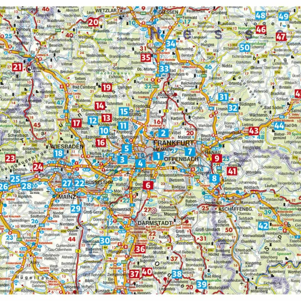 Die Auswahl reicht von gemütlichen Spaziergängen am Main über Weinbergwanderungen im Rheingau bis zu ausgedehnten Gipfeltouren im Taunus. Alle Regionen, die von Frankfurt aus zügig zu erreichen sind, sind vertreten – und sie beeindrucken Wanderer mit herrlicher Natur: Taunus, Lahntal, Rheingau, Rheinhessen und Rheinauen, Wetterau, Odenwald, Bergstraße, Spessart und Vogelsberg. Auch direkt im Stadtgebiet, im Frankfurter Stadtwald und im Grüngürtel, lässt sich Neues entdecken.