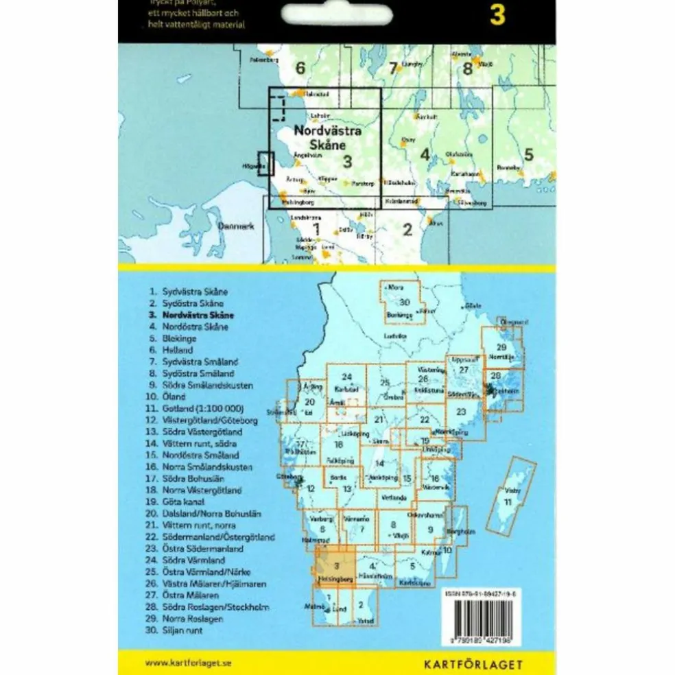 Kartorna är tryckta på Polyart som är helt vattentåligt och rivstarkt, vilket gör dem lämpliga att ta med på turen. Teckenförklaring på svenska, engelsk och tyska.