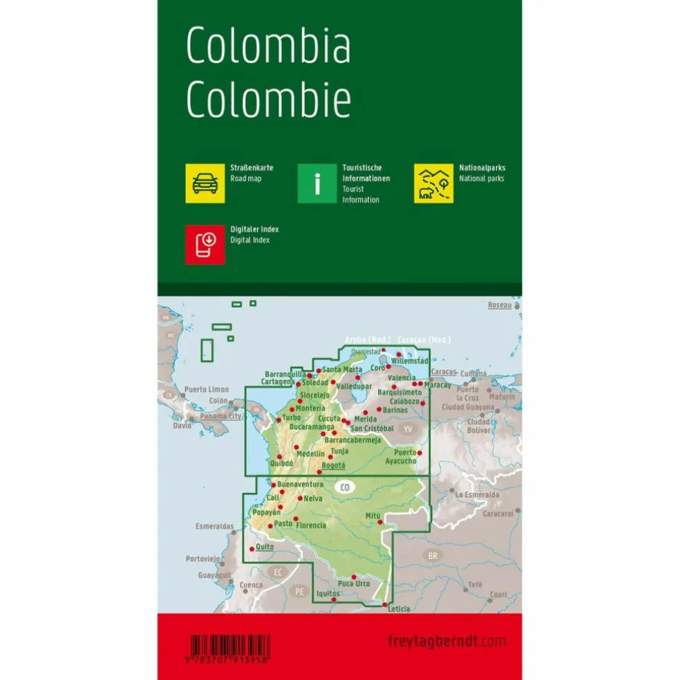 freytag & berndt Autokarten sind für viele Länder und Regionen weltweit erhältlich. Neben der übersichtlichen Gestaltung verfügt die Straßenkarte „Kolumbien 1:1.000.000“ über zahlreiche Zusatzinformationen wie z.B. Straßenbeschaffenheit, Sehenswürdigkeiten und Campingplätze. Mit dem umfangreichen Ortsregister gelingt zudem eine rasche Orientierung. Touristische Informationen, Entfernungen in km, Nationalparks, Ortsregister.