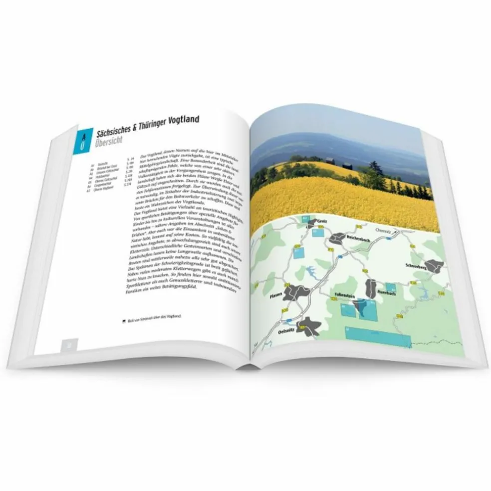 Beschriebene Gebiete: Steinicht, Elstertal bei Greiz, Unteres Göltzschtal, Holzbachtal,Oberes Göltzschtal, Geigenbachtal, Oberes Vogtland, Hof – Theresienstein, Saaletal, Höllental, Rommersreuther Schweiz, Hoher Stein, Silberbacher Spitzberg.