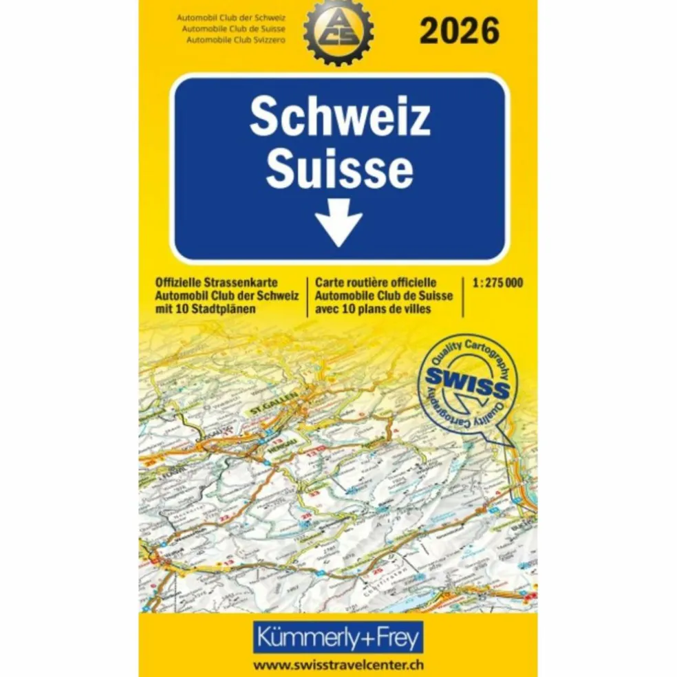 KÜMMERLY+FREY STRASSENKARTE ACS SCHWEIZ 2026 1:275.000 – Straßenkarte