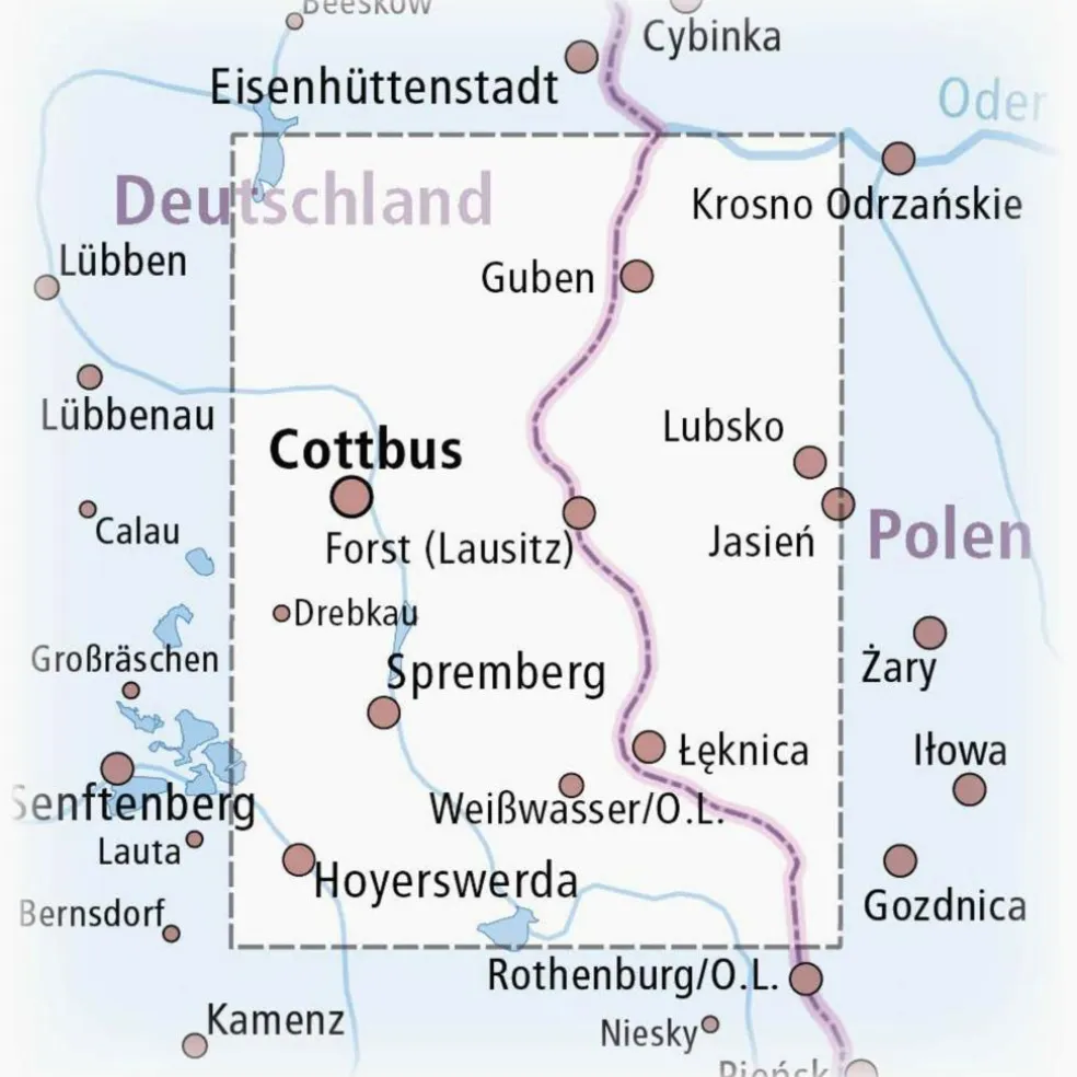 Über die Radwanderkarte Spree – Neiße – Cottbus, Fürst-Pückler-Region: Der gewählte Kartenausschnitt präsentiert eine interessante Landschaft. Die im Kartenteil markierten und auf der Rückseite erläuterten Radwege führen durch die ehemalige Braunkohletagebauregion der Lausitz. Einige Abbaugebiete sind noch im Originalzustand zu sehen, andere werden durch Flutung bereits in ein seenreiches Erholungsgebiet verwandelt. Zudem reizvoll: grenzüberschreitende Radwege entlang von Oder und Neiße, die eine unberührte Landschaft am ehemaligen „Eisernen Vorhang“ erleben lassen. Weitere Infos gibt’s auf der Rückseite der Radwanderkarte Spree – Neiße – Cottbus.