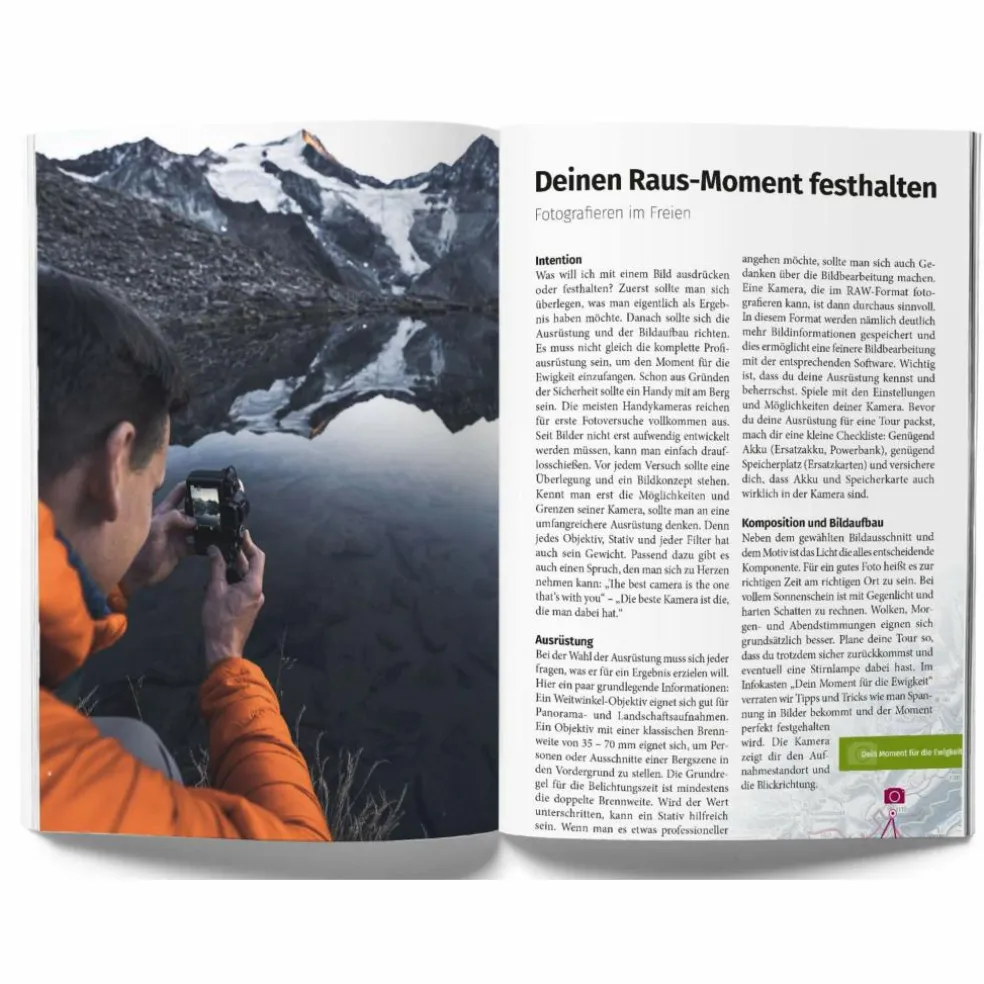 Pack die Kamera ein und raus geht es an die frische Luft zum Wandern. Die perfekte Kombination aus Bildband und Wanderführer, beschreibt die schönsten Wanderwege und Aussichten in 30 detaillierten Tourenbeschreibungen. Ein Team aus Fotografen und Wanderern liefert hierzu Wanderrouten und Kartendetails gepaart mit einzigartigen Fotografien in einem Buch, die zu Traum-Momenten an der frischen Luft einladen. Zusätzlich geben dir die Profi-Fotografen Tipps, wie die einzelnen Aussichten mit der eigenen Kamera festgehalten werden können, um die gesammelten Raus-Erlebnisse auch noch zuhause zu genießen.