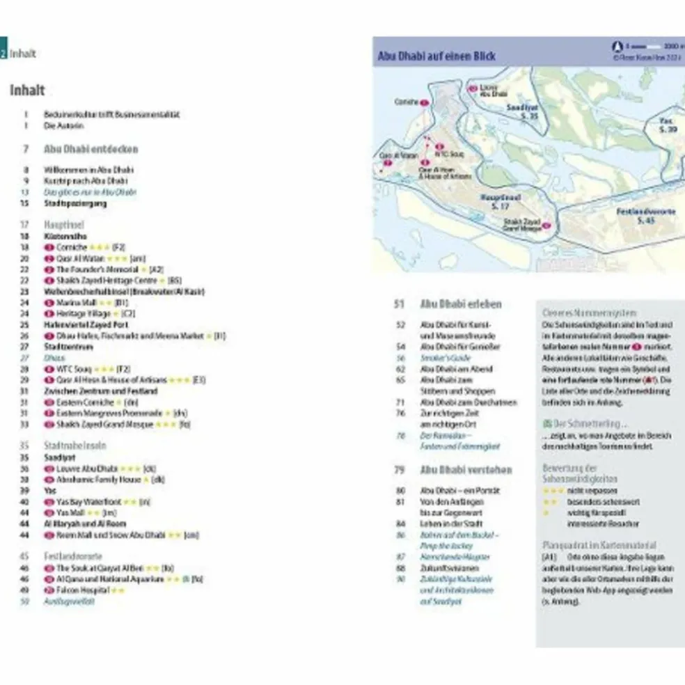 Dieser aktuelle Stadtführer ist der ideale Begleiter, um alle Seiten der dynamischen arabischen Metropole selbstständig zu entdecken: Die wichtigsten Sehenswürdigkeiten und Museen der Stadt sowie weniger bekannte Attraktionen und Viertel ausführlich vorgestellt und bewertet Faszinierende Architektur:traditionelle Wohnpaläste, imposante Moscheen und markante Hochhäuser Abwechslungsreicher Stadtspaziergang Erlebnisvorschläge für einen Kurztrip Ausflüge in die Festlandvororte und Wüstensafaris Shoppingtipps vom traditionellen Souq bis zu modernen Einkaufszentren Die besten Lokale der Stadt und allerlei Wissenswertes über die arabische Küche Tipps für die Abend- und Nachtgestaltung: von der Cocktailbar bis zum Nationaltheater Der Ramadan: Fasten und Frömmigkeit Abu Dhabi zum Durchatmen:Parks, Strände und Wellness Ausgewählte Unterkünfte von preiswert bis ausgefallen Alle praktischen Infos zu Anreise, Preisen, Stadtverkehr, Touren, Events, Hilfe im Notfall … Hintergrundartikel mit Tiefgang: Geschichte, Mentalität der Bewohner, Leben in der Stadt … Kleine Sprachhilfe Arabisch mit den wichtigsten Vokabeln für den Reisealltag Faltplan zum Herausnehmen