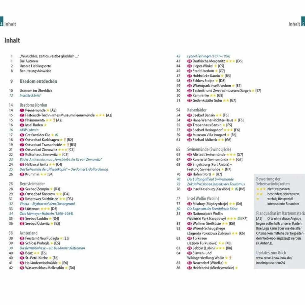 Dazu: kostenlose Web-App für Smartphone, Tablet und PC mit Inselplan- und Satellitenansichten passend zum Text, Routenführung zu allen beschriebenen Sehenswürdigkeiten und touristisch wichtigen Orten, Verlauf der Wanderungen, seitenbezogenen Updates nach Redaktionsschluss sowie einem Mini-Audiotrainer Polnisch