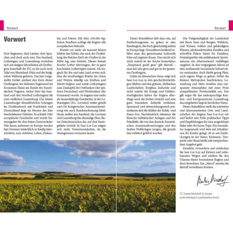 Saarland, Lothringen und Luxemburg – wo sonst, wenn nicht hier, an der Schnittstelle von Frankreich, Luxemburg, Deutschland und Belgien, lässt sich so vielfältig reisen? Das Dreiländereck mit dem südlichen Zipfel Belgiens ist geprägt von Kohle, Eisen und Minette, zugleich aber auch eine Region urwüchsiger Wälder, abenteuerlicher Felsen, idyllischer Flüsse und Seen sowie aussichtsreicher Höhen. Darüber hinaus erzählt die Landschaft mit zahlreichen historischen Zeugnissen eindrucksvoll von der wechselvollen Geschichte zwischen Deutschland und Frankreich.