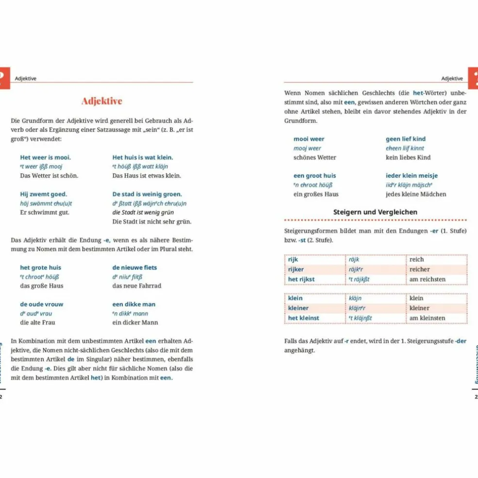 In den Niederlanden kann man sich oft auch auf Deutsch, mindestens aber auf Englisch verständigen. Doch wer schon einmal dort war, weiß, dass man viel freundlicher aufgenommen wird, wenn man sich in der Landessprache versucht und wenigstens ein paar Wörter und Sätze Niederländisch spricht. Die Hürden beim Lernen der niederländischen Sprache sind nicht allzu groß: In Wortschatz und Satzbau gibt es viele Übereinstimmungen mit dem Deutschen, während die grammatischen Formen der Wörter viel einfacher sind.
