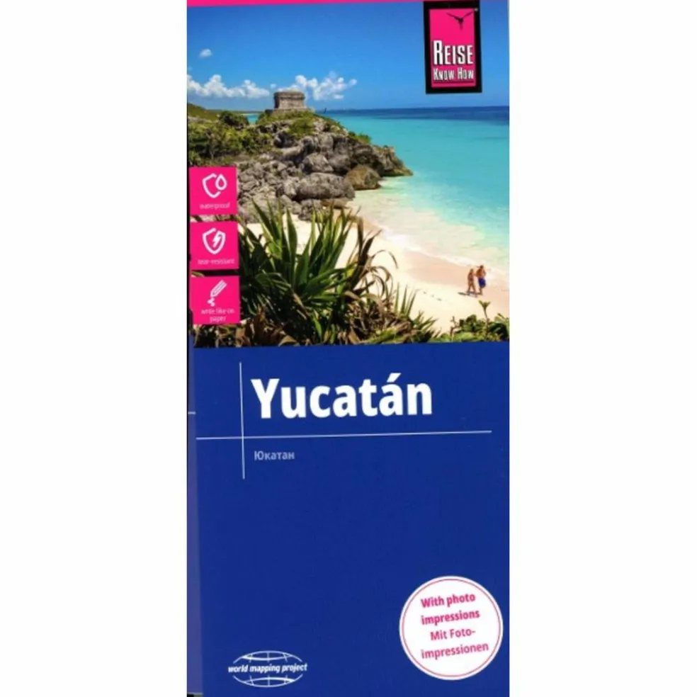 Hochreißfeste und 100% wasserfeste Landkarte „Yucatán“ aus der Serie world mapping project. Reise Know-How Landkarten zeichnen sich durch besonders stabiles Kunststoffpapier aus, das beschreibbar ist wie Papier, sogar mit Bleistift. Der Pappumschlag ist abnehmbar, so dass sich die Karte bequem in jede Tasche stecken lässt. Eine Schutzhülle ist nicht erforderlich. Die kartografische Darstellung konzentriert sich auf die wichtigsten Informationen für Reisende und ist besonders gut lesbar. Statt einer Schummerung werden farbige Höhenschichten verwendet. Höhenlinien mit Höhenangaben Farbige Höhenschichten Klassifiziertes Straßennetz mit Entfernungsangaben Sehenswürdigkeiten Ausführlicher Ortsindex GPS-genau Längen- und Breitengrade Fünfsprachige Legende (deutsch, englisch, französisch, spanisch, russisch)