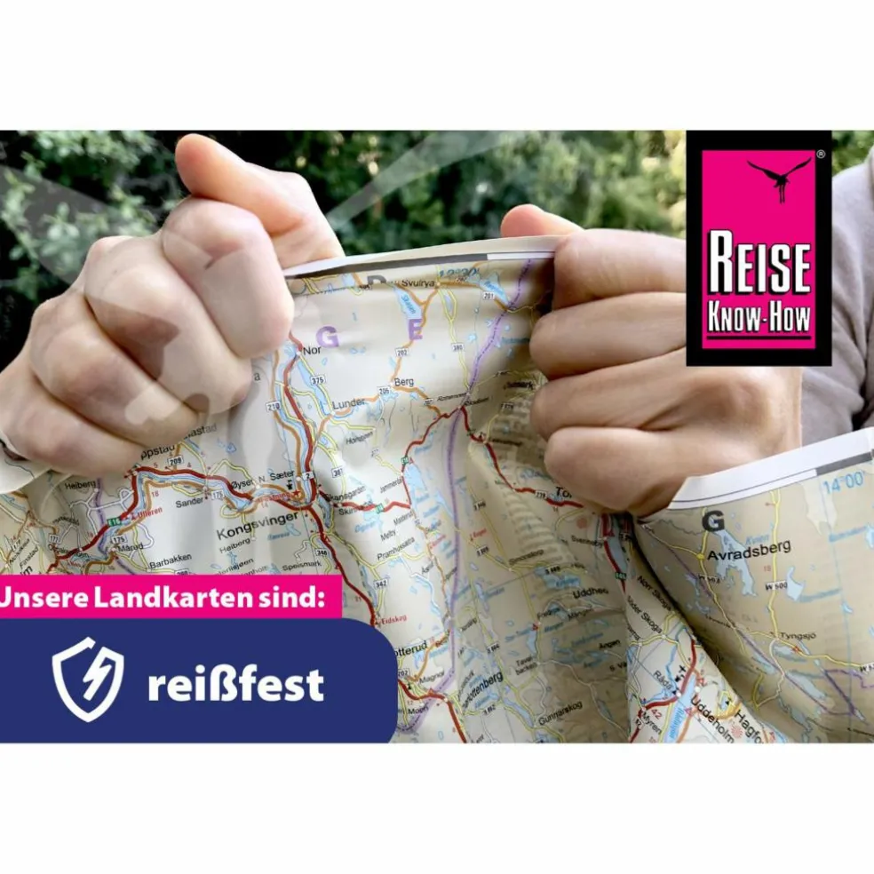 Reise Know-How Landkarten zeichnen sich durch besonders stabiles Kunststoffpapier aus, das beschreibbar ist wie Papier, sogar mit Bleistift. Der Pappumschlag ist abnehmbar, so dass sich die Karte bequem in jede Tasche stecken lässt. Eine Schutzhülle ist nicht erforderlich. Die kartografische Darstellung konzentriert sich auf die wichtigsten Informationen für Reisende und ist besonders gut lesbar. Statt einer Schummerung werden farbige Höhenschichten verwendet.