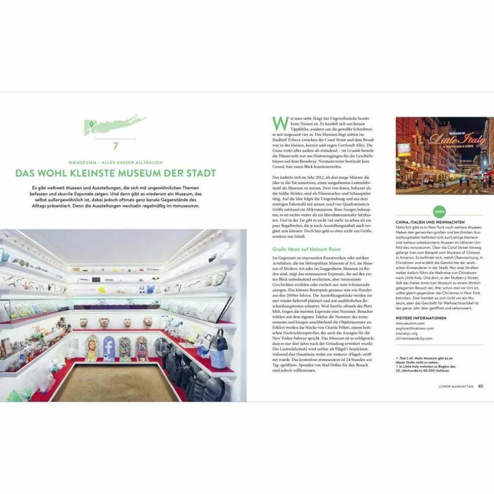 Sie denken, Sie kennen den Big Apple bereits? Sicher? Dieses Buch nimmt Sie mit auf eine Reise zu versteckten Juwelen, unbekannten Oasen und Insider-Hotspots, die selbst New Yorker staunen lassen. Perfekt für alle, die NYC, abseits von Times Square und Co., auf eine völlig neue Art erleben wollen. Ob außergewöhnliche Restaurants, geheime Parks oder überraschende Museen – hier finden Sie Inspiration für unvergessliche Entdeckungstouren!