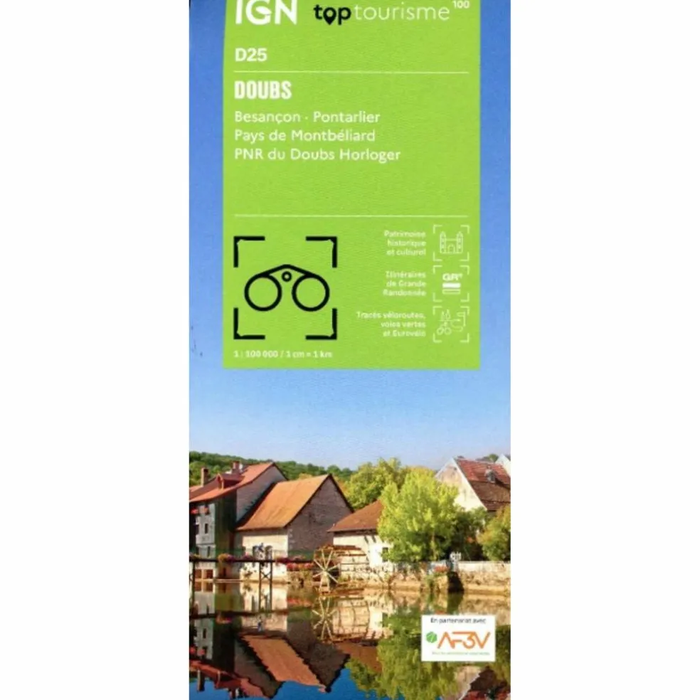 La nouvelle TOP 100 grâce à son échelle au 1:100.000ème (1 cm = 1 km) est la carte idéale pour découvrir une région et faire du tourisme à pied (GR), à vélo ou en voiture, les parcours VELO sont réalisés en partenariat avec l’association AF3V – VéloRoutes et Voies Vertes.