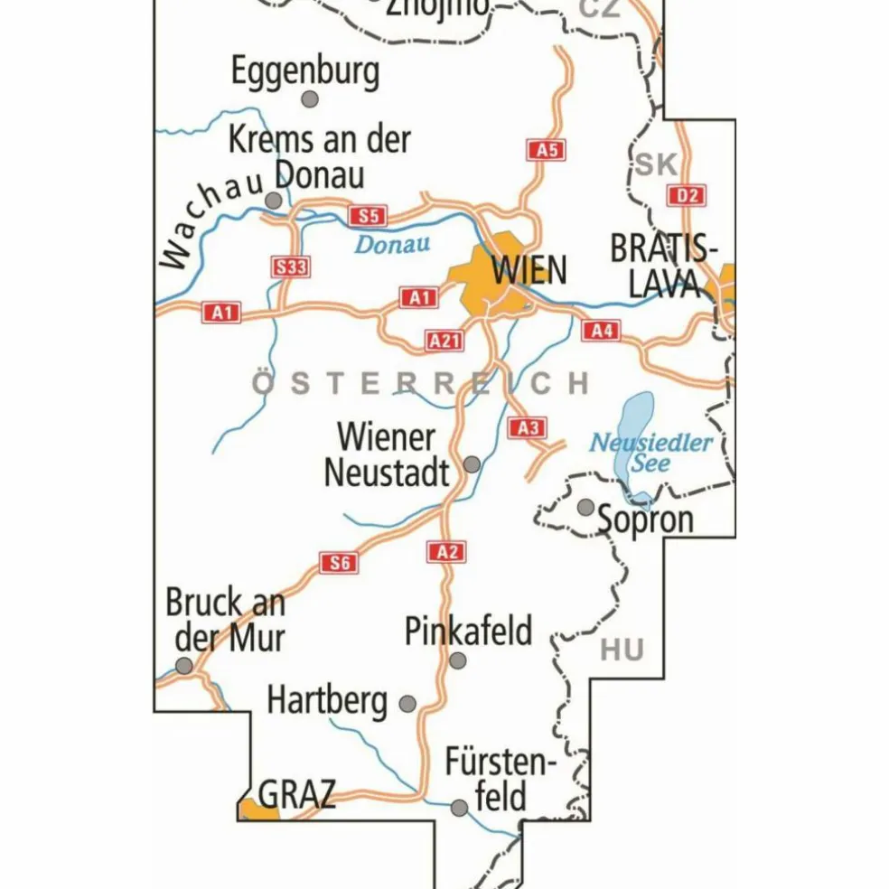 ADFC-RADTOURENKARTE ÖS2 ÖSTERREICH WIEN BURGENLAND 1:150:000 – Fahrradkarte