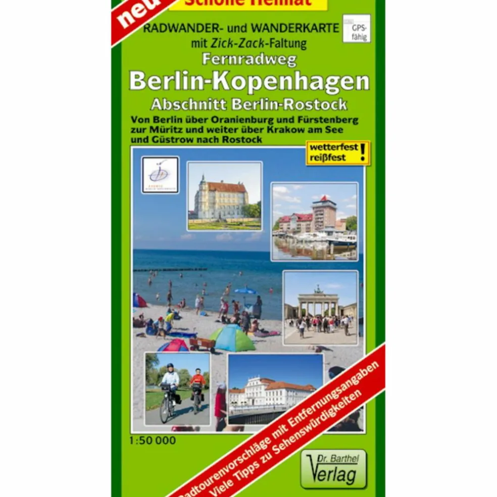 Kombinierte Radwander- und Wanderkarte mit Zick‑Zack‑Faltung (Info). Reiß- und wetterfest durch Beschichtung mit hochwertiger nicht spiegelnder Folie. Von Berlin über Oranienburg und Fürstenberg zur Müritz und weiter über Krakow am See und Güstrow nach Rostock.