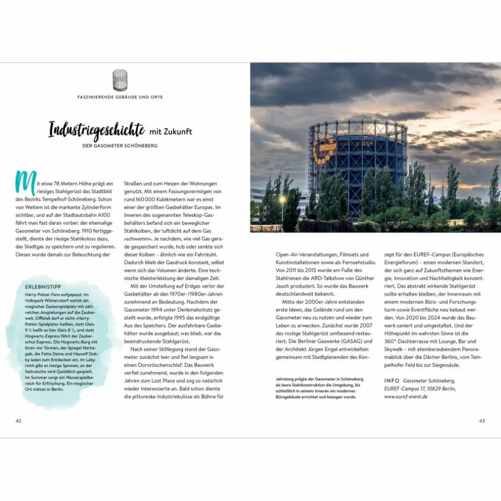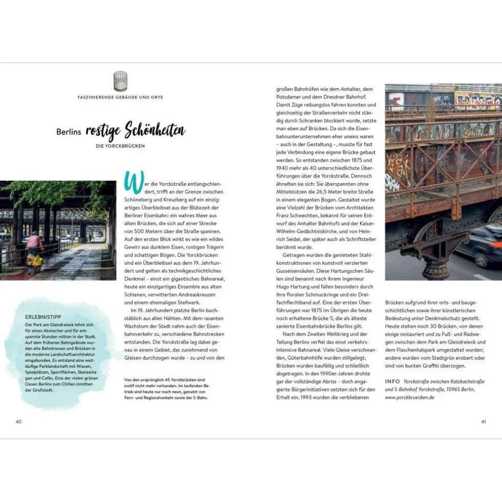 Berlin ist nicht nur Hauptstadt und beliebtestes deutsches Reiseziel,sondern auch eine riesige Schatzkiste an unentdeckten Juwelen. Wer genug von 08/15-Sehenswürdigkeiten hat oder glaubt, darüber alles zu wissen, wird hier eines Besseren belehrt. Ob Brückenmeer, japanische Kirschblüte oder Weinberge inmitten der Großstadt, Hollywood-Drehorte und Western-Stadt, verlassene Orte in und um Berlin oder Streetart aller Art – dit is Berlin.