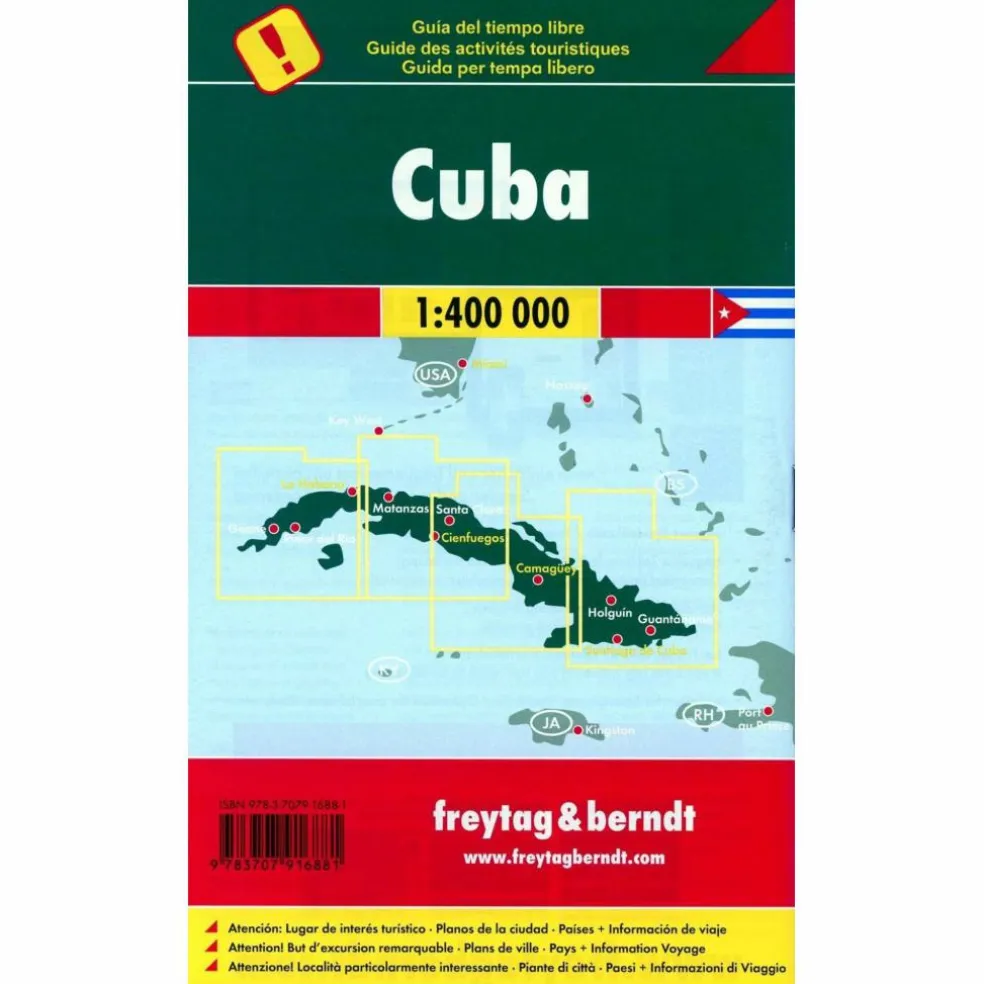 Neben der übersichtlichen Gestaltung bietet das Autokarten Set „Kuba 1:400.000“ zahlreiche Zusatzinformationen wie z.B. Straßenbeschaffenheit, Sehenswürdigkeiten, Campingplätze und diverse Innenstadtpläne. Mit dem umfangreichen Ortsregister gelingt zudem eine rasche Orientierung.Im Beiheft finden sie Länder- und Reiseinformationen, besondere Ausflusziele, Infos zur Natur, Citypläne und GPS-Daten. (Sprachen: Deutsch, Englisch, Spanisch).Autokarten Set mit 2 Blättern, beidseitig.Citypläne von Camagüey, Cienfuegos, La Habana (Havanna), Miami, Playas del Este, Varadero und Santiago de Cuba;Besondere Ausflugsziele, Ortsregister mit Postleitzahlen;freytag & berndt Autokarten sind für viele Länder und Regionen weltweit erhältlich.