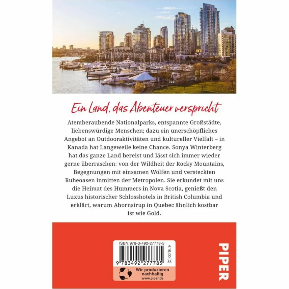 Atemberaubende Nationalparks, Berge und Meere, Grizzlys und Elche; dazu Sportmöglichkeiten zu jeder Jahreszeit, lukullische Genüsse und sprachliche wie kulturelle Vielfalt: Kanada wird nie langweilig. Sonya Winterberg hat das ganze Land bereist und lässt sich immer wieder gerne überraschen: von der ungebrochenen Freundlichkeit der Kanadier, der Wildheit der Niagarafälle und den schroffen Klippen der Rocky Mountains. Tagelang fährt sie mit uns mit dem Zug durch unendliche Weiten, schwelgt in Schlosshotels in British Columbia in historischem Luxus und schmaust köstlich und koscher in Quebec. Es ist nicht leicht, das zweitgrößte Land der Erde zu begreifen, doch mit dieser Gebrauchsanweisung sind sie ganz nah dran. Ansonsten hilft nur noch: selbst hinreisen und entdecken!