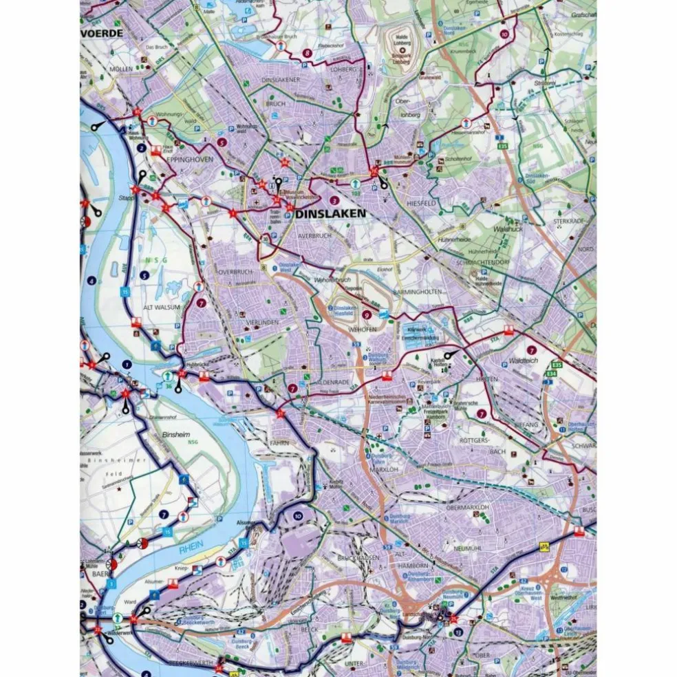 KOMPASS FAHRRADKARTE KREIS WESEL MIT DUISBURG, OBERHAUSEN, K – Fahrradkarte