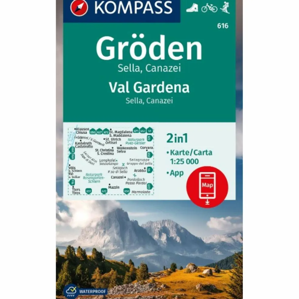 KOMPASS WANDERKARTE 616 GRÖDEN / VAL GARDENA, SELLA, CANAZEI