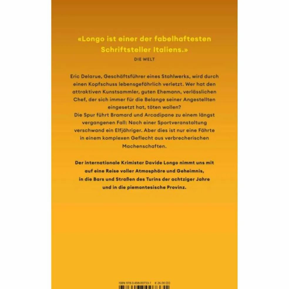Ein atmosphärischer Kriminalroman, der uns ins Italien der 80er Jahre entführt. Für Fans von Fred Vargas, Jean-Luc Bannalec und Gil Ribeiro. Wenn Commissario Arcadipane und Bramard gemeinsam ermitteln, wird es packend, komisch und einen Hauch philosophisch. In ihrem fünften Fall im Piemont jagen die beiden lange Zeit einer falschen Fährte hinterher, bis eine einsame Wanderung unverhoffte Erkenntnis bringt … Eric Delarue, Geschäftsführer eines Stahlwerks, wird durch einen Kopfschuss lebensgefährlich verletzt. Wer hat den Kunstsammler, Ehemann, Chef, der sich immer für die Belange seiner Angestellten eingesetzt hat, töten wollen?