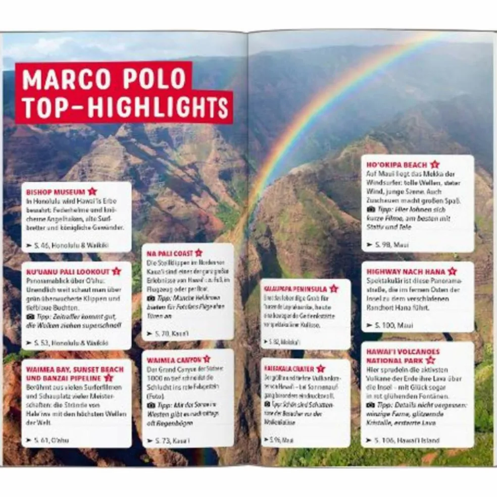 Alle Highlights im Überblick: Sehenswürdigkeiten, die du dir nicht entgehen lassen solltest und Insider-Tipps abseits der Touristenpfade Poke-Bowls, Shaved Ice und Piña Colada: Hier findest du tolle Cafés, Restaurants und Bars für jeden Geschmack und Geldbeutel! MARCO POLO Erlebnistouren: Ausflüge und Tagestrips für Neugierige, Wanderlustige und Familien – mit Karte oder App!