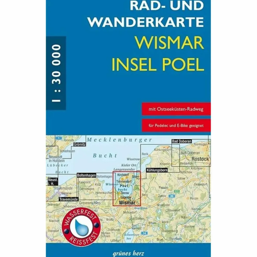 Mittelpunkt dieser Rad- und Wanderkarte bildet neben der Hansestadt Wismar auch die Insel Poel. Der Kartenausschnitt reicht von Gollwitz im Norden bis nach Wismar im Süden sowie von Beckerwitz im Westen bis nach Blowatz und Hornstorf im Osten. Weitere sehenswerte Orte im Kartenbereich sind Timmendorf, Kirchdorf, Zierow, Stove, Gägelow, Wendorf und Boiensdorfer Werder. Die topographische Karte im Maßstab 1:30.000 enthält die exakte Wegezeichnung der durch die Region führenden Fernradwege – mit Angaben zur Oberflächenbeschaffenheit – sowie Verlauf und Markierung der Wanderwege. Eine spezielle Symbolik innerhalb der topographischen Karte widerspiegelt die touristischen Besonderheiten und Leistungsangebote. Die Kartenrückseite gibt kurze Erläuterungen zu besuchenswerten Orten und Plätzen, die durch Fotos ergänzt werden. Die Karte zeichnet sich durch ihre wasser- und reißfeste Beschaffenheit und ein handliches Format (48 x 60cm) aus.