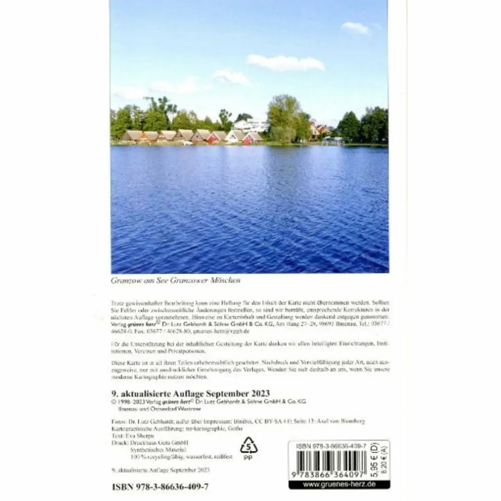 Die Rad-, Wander- und Gewässerkarte wurde nach geographischen, landschaftlichen und touristischen Aspekten erarbeitet. Der Maßstab von 1 : 35.000 gibt Raum für eine hohe Genauigkeit und Detailtreue. Neben der exakten Wegezeichnung, unterschieden nach Wanderwegen und Radwanderrouten, die 3 ver¬schiedene Kategorien die Oberflächenqualität kennzeichnen, sind Besonderheiten der Landschaft und Höhenangaben eingetragen. Zusätzlich finden Wassersportler und Binnenschifffahrer die nötigen Informationen über die Wasserstraßen, Wasserwanderrouten, Be¬tonnung, Seetiefen, Ankerplätze und Schleusen.