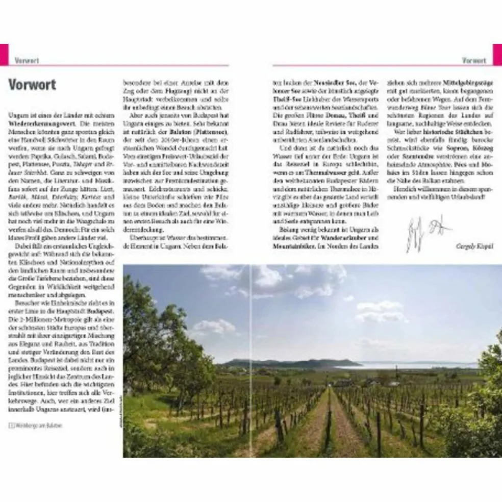 Umkreisen Sie das „ungarische Meer“ per Fahrrad, Zug oder Auto und genießen Sie zur Entspannung die Wärme des Thermalsees von Hévíz. Lassen Sie sich von der ungarischen Herzlichkeit und Freundlichkeit begeistern und probieren Sie klassische ungarische Spezialitäten wie das Gulasch, Letscho oder auch Lángos und runden diese mit einem leckeren Wein aus den Weingebieten Ungarns, wie zum Beispiel Tokaj oder Eger (Erlau), ab. Wer Ungarn individuell entdecken möchte, findet in diesem Reisehandbuch ausführliche Informationen zu Geschichte, Kultur, Natur und Traditionen des Landes sowie zu allen sehenswerten Orten und Landschaften.