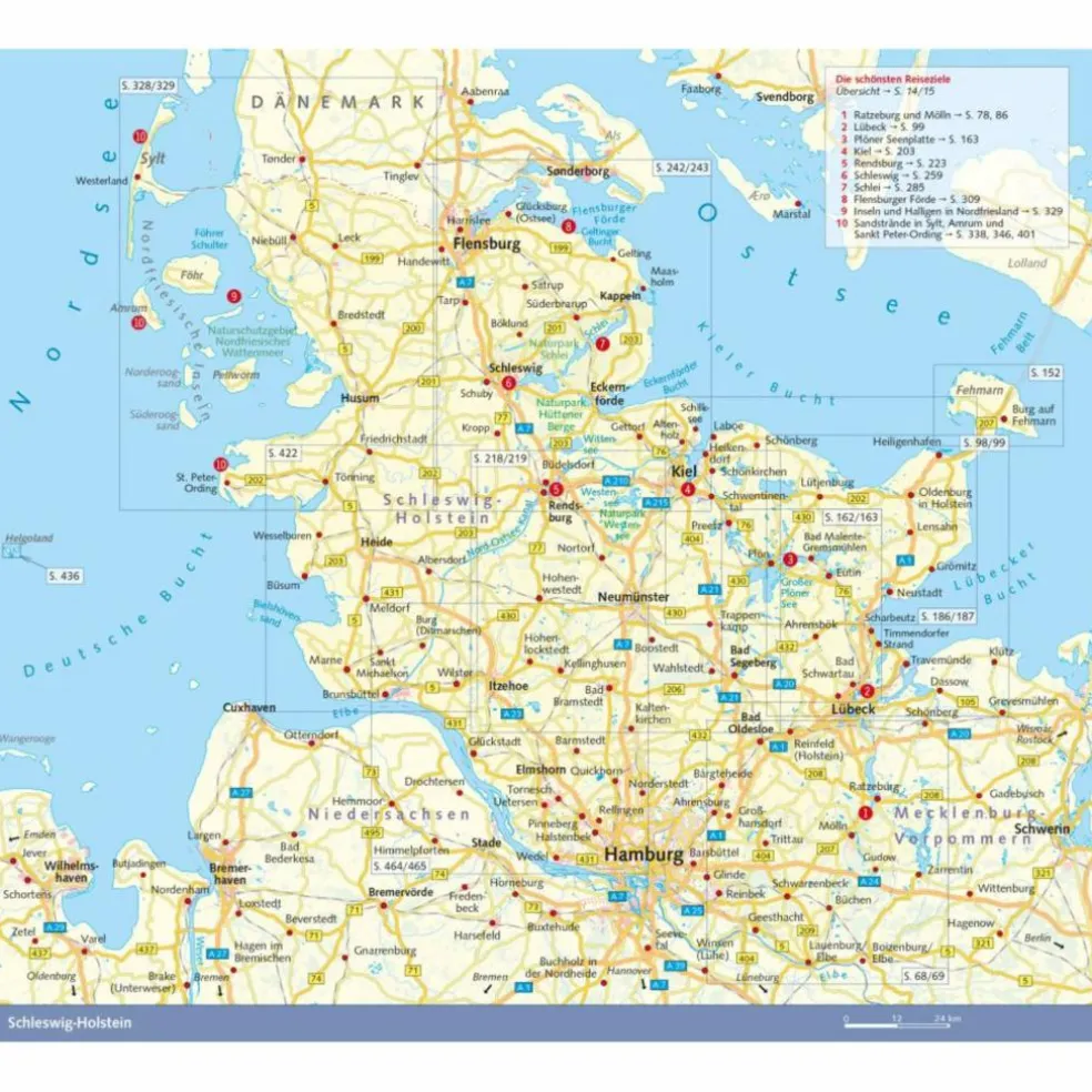 Dieser Reiseführer stellt Schleswig-Holstein in seiner ganzen Vielfalt ausführlich vor, bezieht alle Inseln und Halligen ein und berücksichtigt auch die weniger bekannten Sehenswürdigkeiten. Er bietet umfangreiche reisepraktische Tipps für Aktivitäten, Unterkünften und Gastronomie sowie Kulturangebote und Sportmöglichkeiten, ein umfangreicher einführender Teil beleuchtet die wechselvolle Geschichte des Landes und macht mit seinen Besonderheiten bekannt.