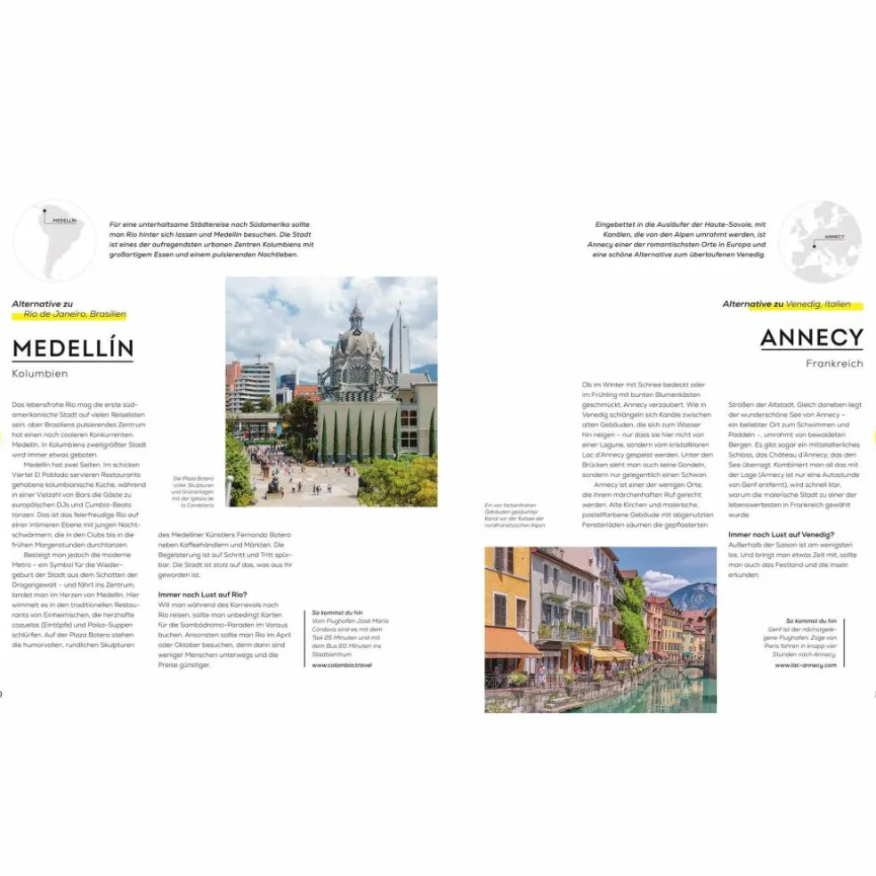 Weniger Menschen, authentische Begegnungen, lokale Gemeinden unterstützen – die im Buch vorgestellten Reise-Alternativen und Geheimtipps bieten zahlreiche Vorteile gegenüber touristischen Reiseorten und überfüllten Attraktionen. Lass dich von der grandiosen Stimmung beim Karneval in Montevideo mitreißen, um den Menschenmassen auf den Straßen von Rio de Janeiro zu entgehen, oder schlendere entlang der Kanäle von Annecy, statt mit der Gondel durch Venedig zu fahren: Erweitere deinen Horizont, denn unsere Erde hat mehr zu bieten als New York, Angkor Wat und das Great Barrier Reef.