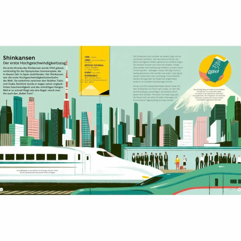 Eine visuelle Reise, die jungen und älteren Lesern die Magie des Bahnreisens nahebringt. Erfahren Sie mehr über besondere Züge wie den Hochgeschwindigkeitszug Shinkansen und die ehrgeizigsten, gewagtesten und wichtigsten Zugstrecken, die je gebaut wurden. Von Australien bis Wales ist jede Route einzigartig. Finden Sie heraus, warum, während wir um den Globus reisen, und erforschen Sie zusätzlich die Geschichten der Menschen, die die Eisenbahnen gebaut, entworfen und gefahren sind. Entdecken Sie, wie diese Routen entstanden sind und welche Auswirkungen sie auf die Geschichte und das heutige Leben der Menschen hatten.