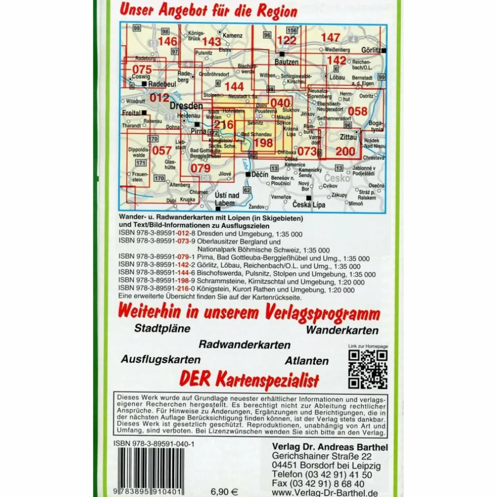 Mit Straßennamen zur besseren Orientierung, farbig hervorgehobenen Ausflugszielen, Sehenswürdigkeiten der Umgebung in Text und Bild und alle regionalen und überregionalen Wander- und Radwanderwege sowie ausgewiesene Radtourenvorschläge mit Entfernungsangabe in Kilometern, mit Malerweg, GPS-fähig.