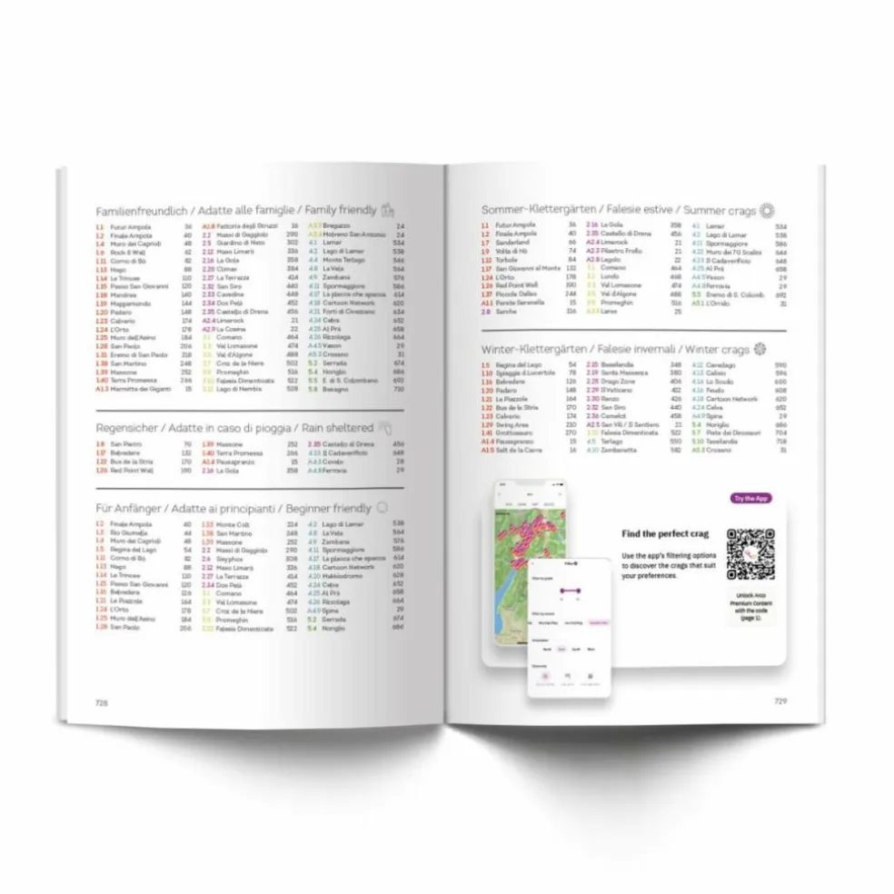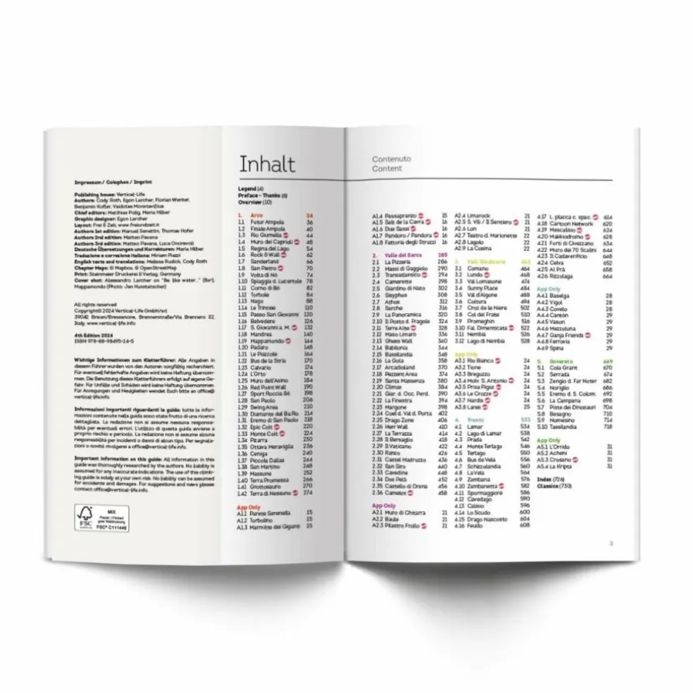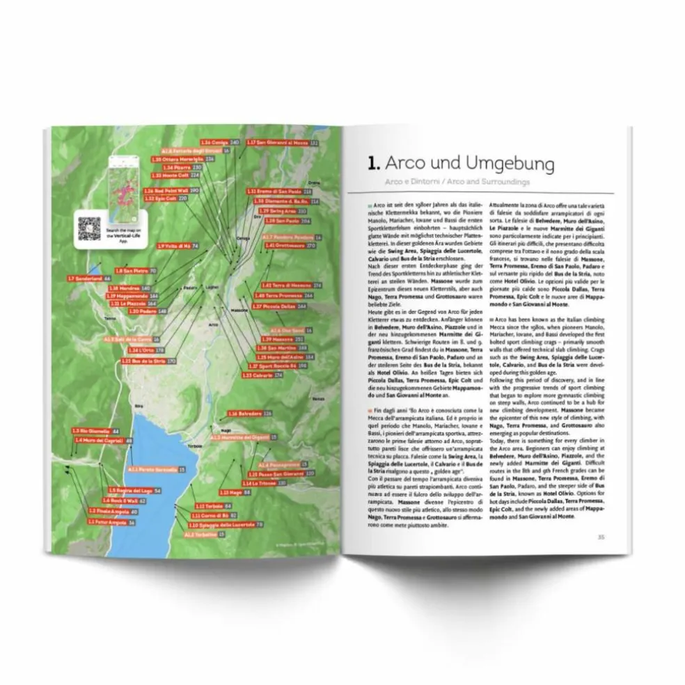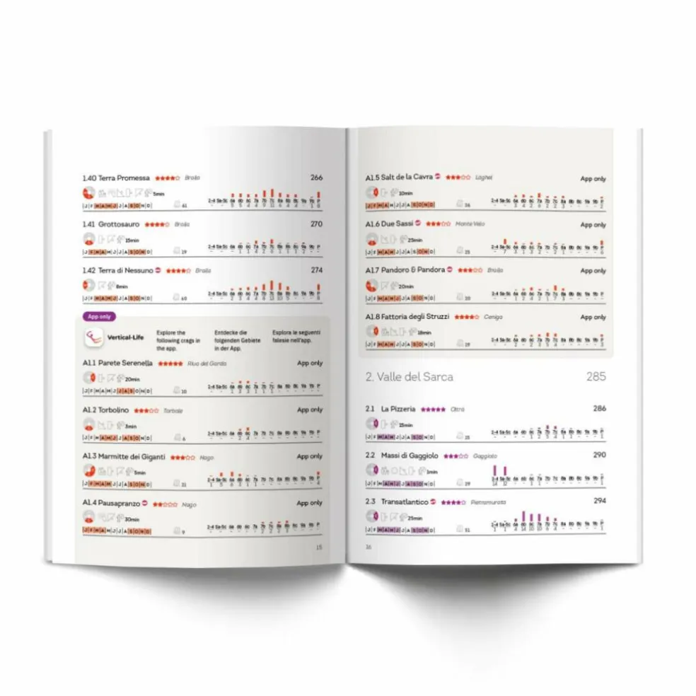 164 Klettergebiete, davon sind 32 Gebiete neu sowie 38 Gebiete exklusiv in der App verfügbar Sprachen: Deutsch, Italienisch, Englisch + Vertical-Life App