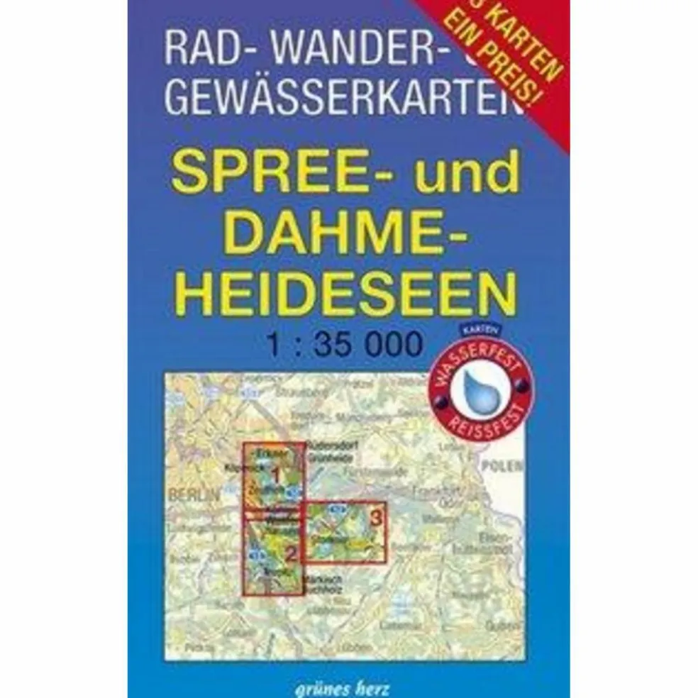 Die drei Karten „Dahme-Spree: Köpenick, Erkner, Königs-Wusterhausen“, „Dahme-Seen: Königs-Wusterhausen, Teupitz“ und „Storkower Gewässer: Scharmützelsee“ erscheinen als praktisches Kartenset und decken das Gebiet von Köpenick, dem Westufer des Motzener Sees, Königs-Wusterhausen, Märkisch Buchholz, dem Westufer des Wolziger Sees und dem Springsee ab. Wald- und seenreiche Landschaft, idyllische Orte sowie der Naturpark Dahme-Heideseen mit seiner bemerkenswerten Flora und Fauna gehören zweifellos zu den landschaftlich reizvollsten Gegenden des Landes Brandenburg. Ein gut ausgeschildertes Wegenetz steht Wanderern und Radlern zur Verfügung. Viele an den Seen gelegene Erholungsorte sind beliebte Ausgangspunkte für Wasserwanderer und SeglerDie Karten im Maßstab von 1:35.000 wurden nach geographischen, landschaftlichen und touristischen Aspekten erarbeitet. Neben der exakten Wegezeichnung, unterschieden nach Wanderwegen und Radwanderrouten, die drei verschiedene Kategorien der Oberflächen-qualität kennzeichnen, sind Besonderheiten der Landschaft sowie Höhenangaben ein-getragen. Zusätzlich sind wichtige Informationen für Wassersportler und Binnenschiffer enthalten. Neben den Ortsbeschreibungen und Erwähnenswerten zur Geschichte findet der Kartennutzer historische und landschaftlich reizvolle Punkte, markante Bäume u. Ä. Bekanntes und „Geheimtipps“. Durch das handliche Format (48 x 68 cm bzw. 48 x 60 cm) finden die Karten bei den Nutzern großen Anklang.