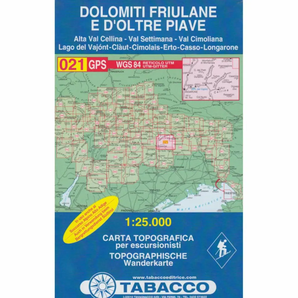 Der Verlag Casa Editrice Tabacco begann nach dem 2. Weltkrieg mit der Herstellung von topographischen Wanderkarten, die auf internationaler Ebene bei Alpinisten, Trekkern, Wanderern und Ausflüglern für ihre Präzision und Verlässlichkeit bekannt sind. Die angebotenen Karten konzentrieren sich auf den östlichen Alpenraum, und zwar vom Adamello bis zum Triestiner Karst, daher einschließlich aller Dolomiten, die von der UNESCO zum „Welterbe“ erklärt wurden.