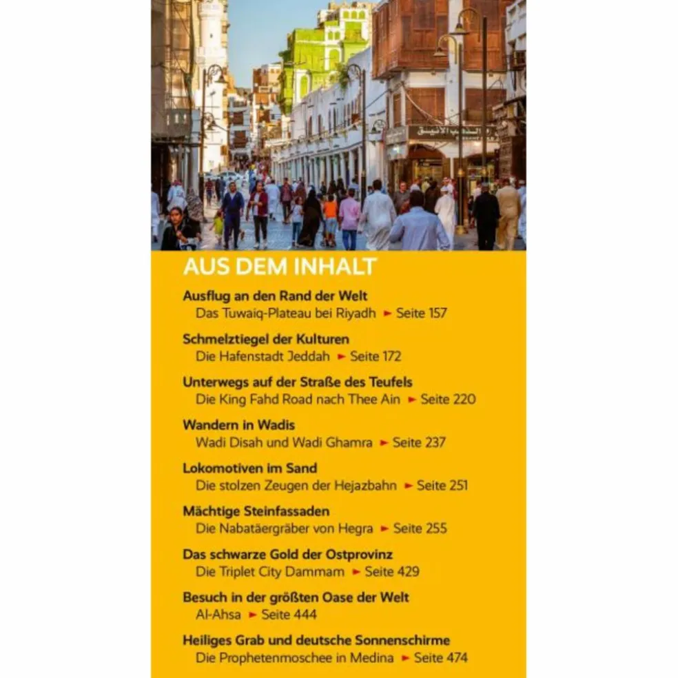 Dieser aktuelle Reiseführer beschreibt neben den Top-Sehenswürdigkeiten von Al Ula, Mada’in Saleh und der Altstadt von Jeddah ein Land im rasanten Umbruch. Er führt auf den Spuren der berühmten Hejazbahn durch das gleichnamige Gebirge, zeigt Wege durch die Berge des Asir und in die beiden großen Wüsten.