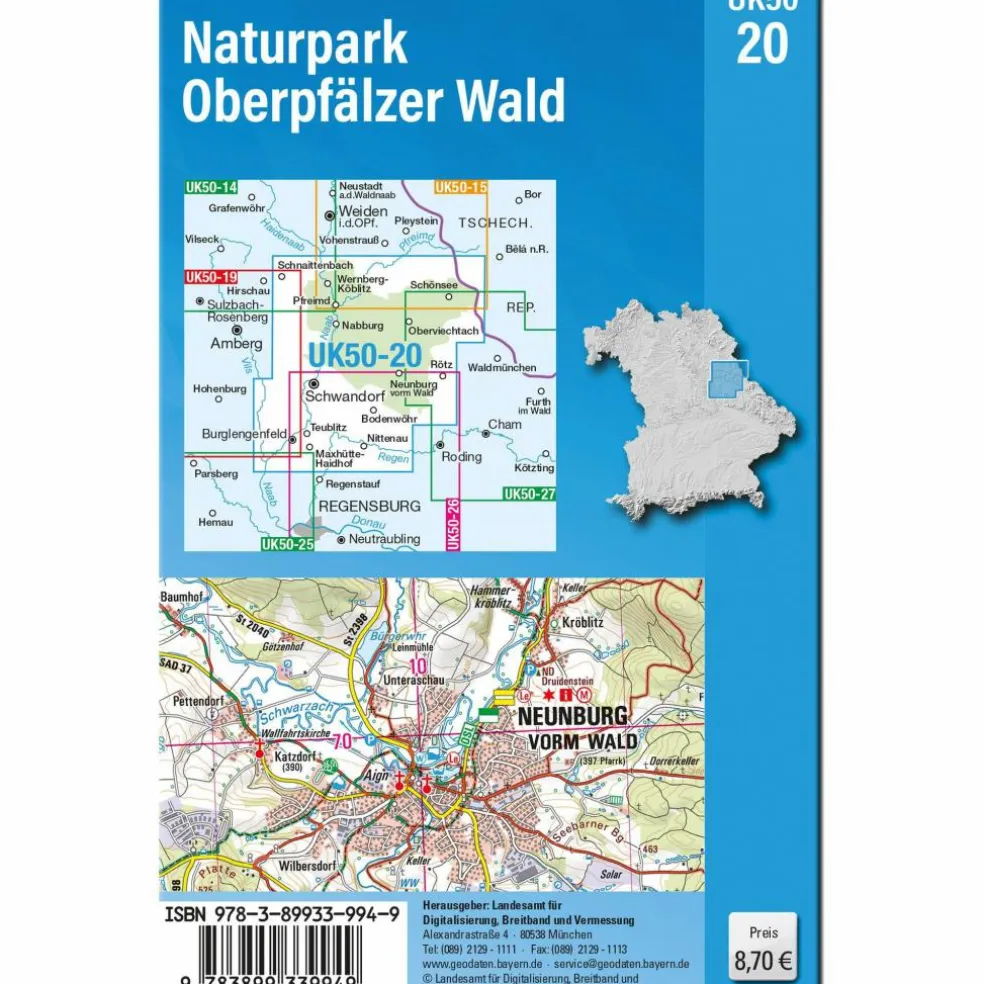 Kartenblatt UK50-20 Naturpark Oberpfälzer WaldREGIONEN: Oberpfalz, Oberpfälzer Wald, Bodenwöhrer Bucht, Fränkische Alb, Bayerischer WaldORTE: Schwandorf, Burglengenfeld, Neunburg vorm Wald, Nittenau, Nabburg, Pfreimd, Schönsee, Schwarzenfeld, Wackersdorf, Maxhütte-Haidhof, Teublitz