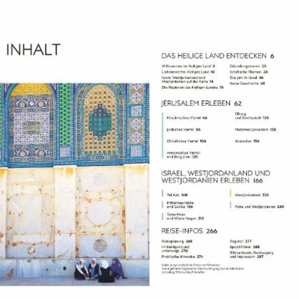 . Ausgewählte Top-Themen: Auf den bildgewaltigen Themenseiten des Jerusalem-Reiseführers stehen charakteristische Besonderheiten im Fokus. Entdecken Sie die moderne israelische Küche, spannende Outdoor-Aktivitäten oder verschiedene Zeremonien im Heiligen Land.