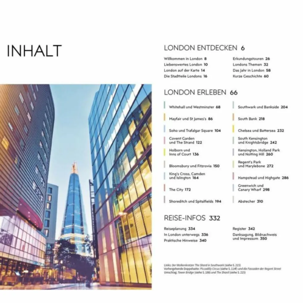Bildgewaltige Themenseiten rücken charakteristische Besonderheiten – wie die besten Rooftops, die grünen Oasen der Stadt und das royale London – in den Fokus. Inspirieren – Planen – Entdecken – Erleben: Tauchen Sie mit dem Vis-à-Vis Reiseführer London bereits vor Ihrer Reise mitten hinein in die pulsierende britische Metropole!