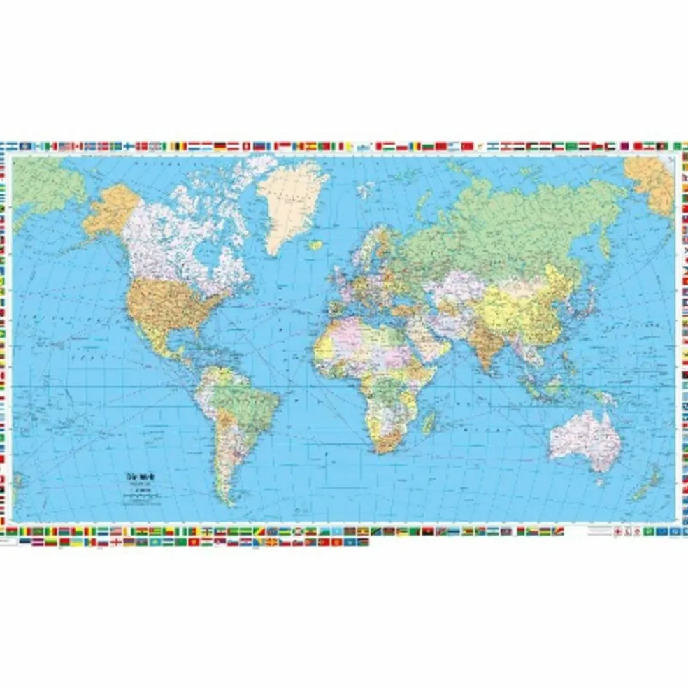 Welt politisch Poster, Massstab: 1:50 000 000, Format: 87,5 x 51 cm, mit Flaggen. Matt laminiert.Sprachen: Karte und Legende in Deutsch